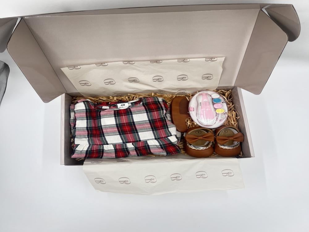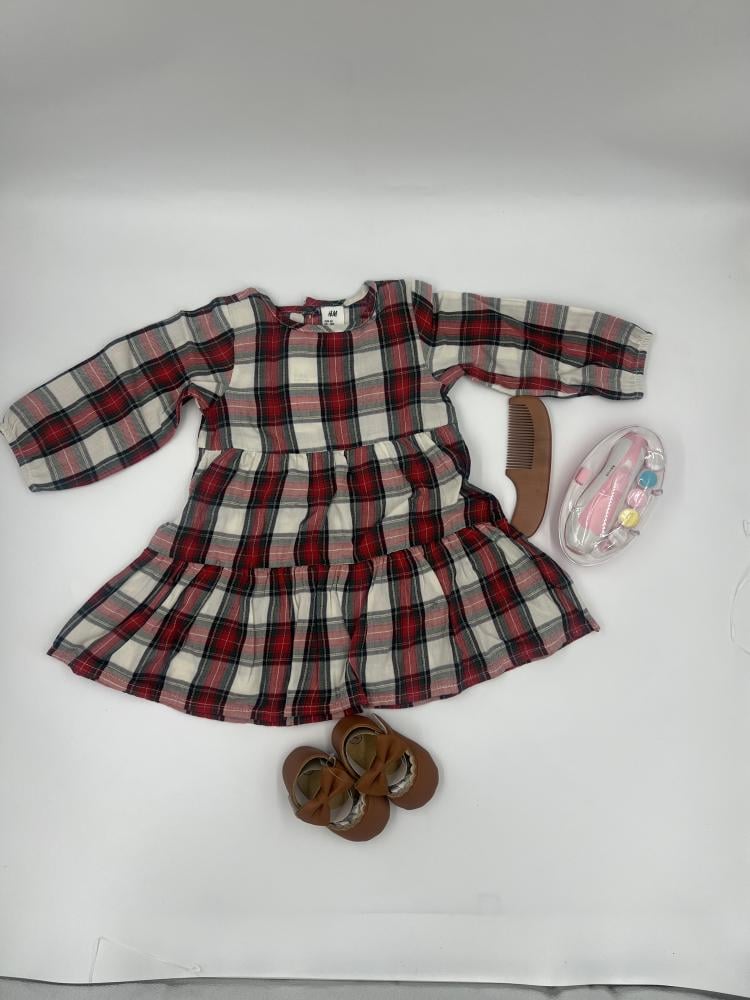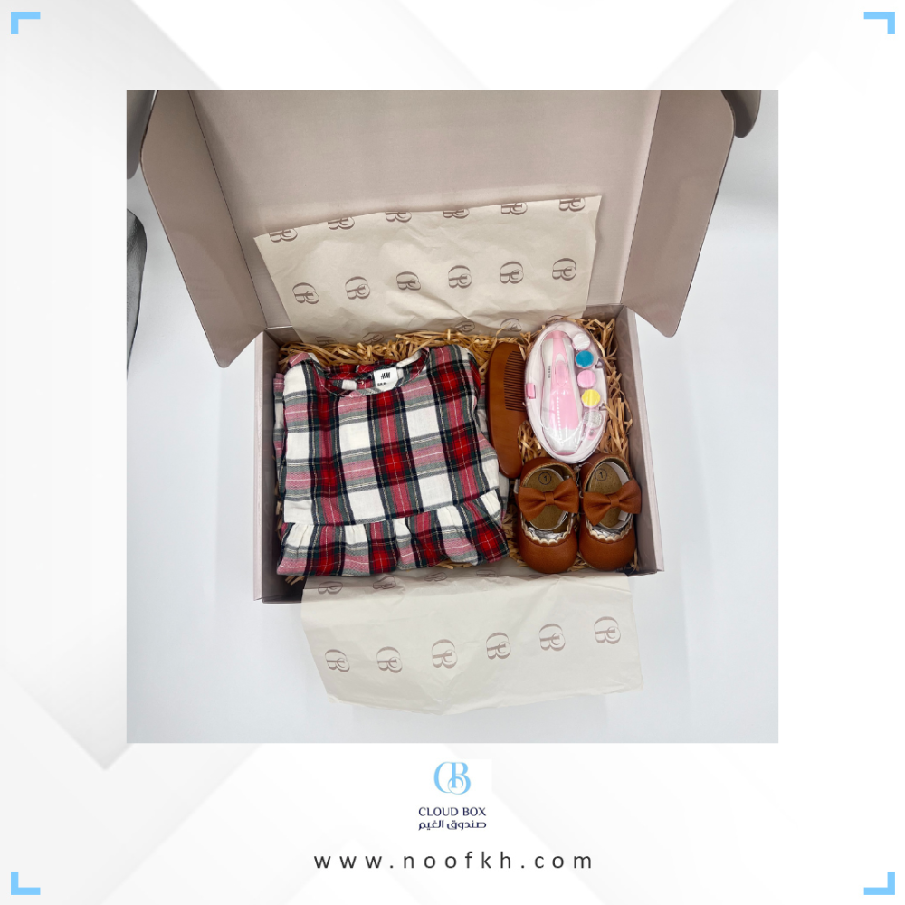 هدايا مواليد مميزهمحتويات الهديهفستان قطني كاروهات9-12شهر مشط خشبيشوز جلد بني مبرد أظافر كهربائي لحديثي الولادة بوكس جاهز للإهداءكرت اهداء