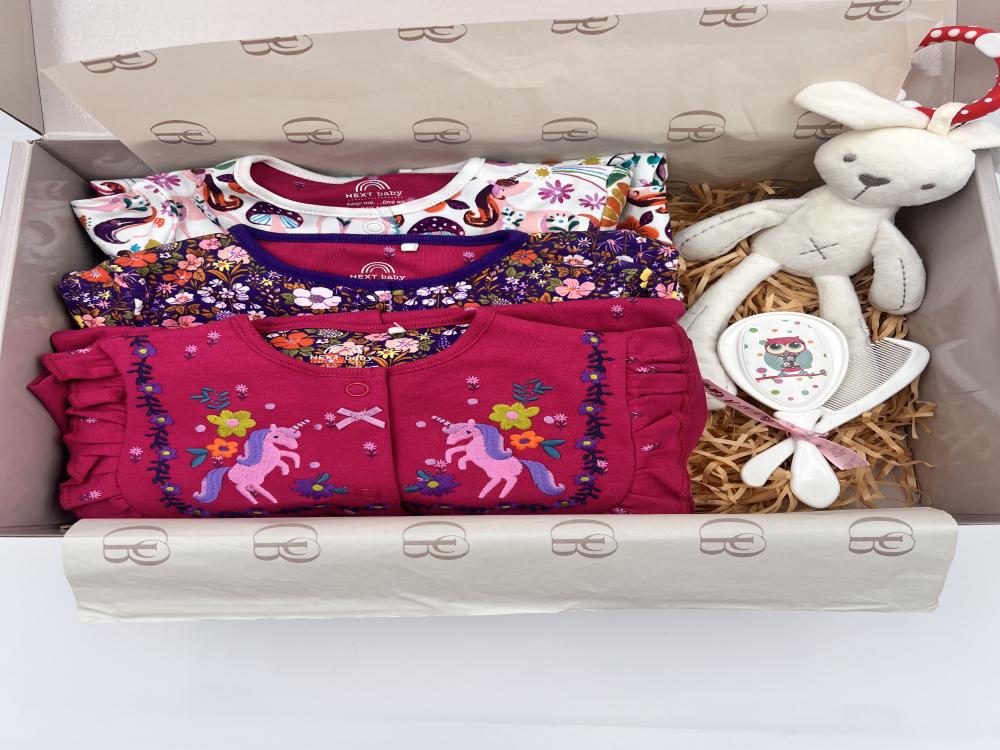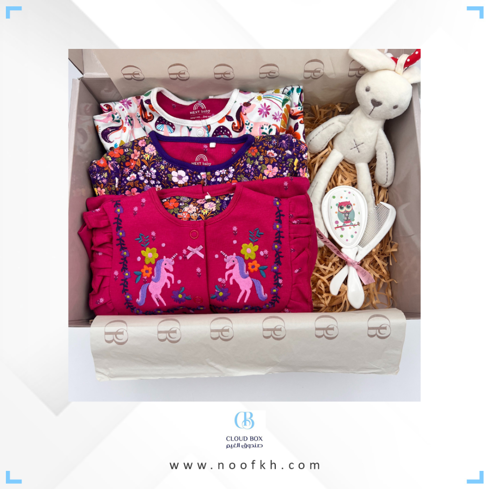هدايا مواليد مميزهمحتويات الهديهطقم مواليد مكون من 3 افرول بالوان جذابة بمقاسينطقم مشط وفرشاة للشعر 🦉لعبه ارنوب لطيف وقابلة للتعليقبوكس جاهز للاهداءكرت اهداء