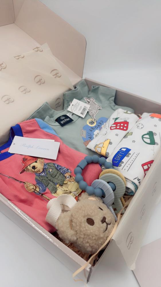 هدايا مواليد مميزه محتويات الهديه افرهول رالف لوريان ٣ شهور افرهول نيوبورن لفه (مهاد) مع قبعه تعليقة ( مصاصه) لهايه مواليد بوكس جاهز للاهداءكرت اهداء
