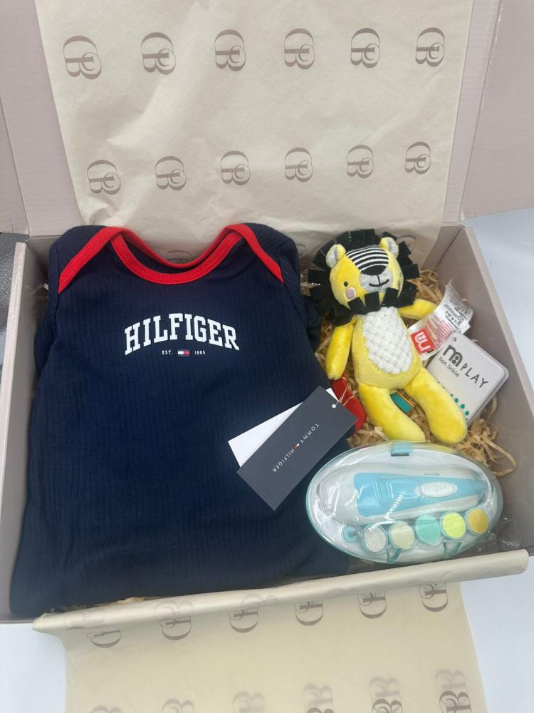هدايا مواليد مميزه محتويات الهديه افرول من تومي هيلفقر 3-6 شهوردمية الاسدعلبة للعنايه بالاظافر للمواليدبوكس جاهز للاهداءكرت اهداء