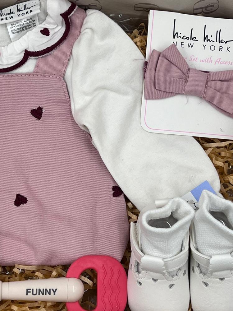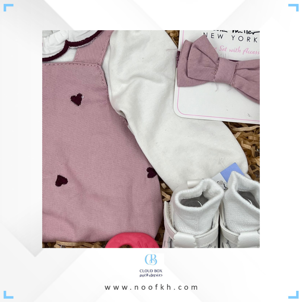هدايا مواليد مميزه محتويات الهديه فستان علاق من قطعتين وردي بقلوب حمراءمع ربطة شعرجوارب بيضاءحذاء ابيضلعبه خشخاشهبوكس جاهز للاهداءكرت اهداء